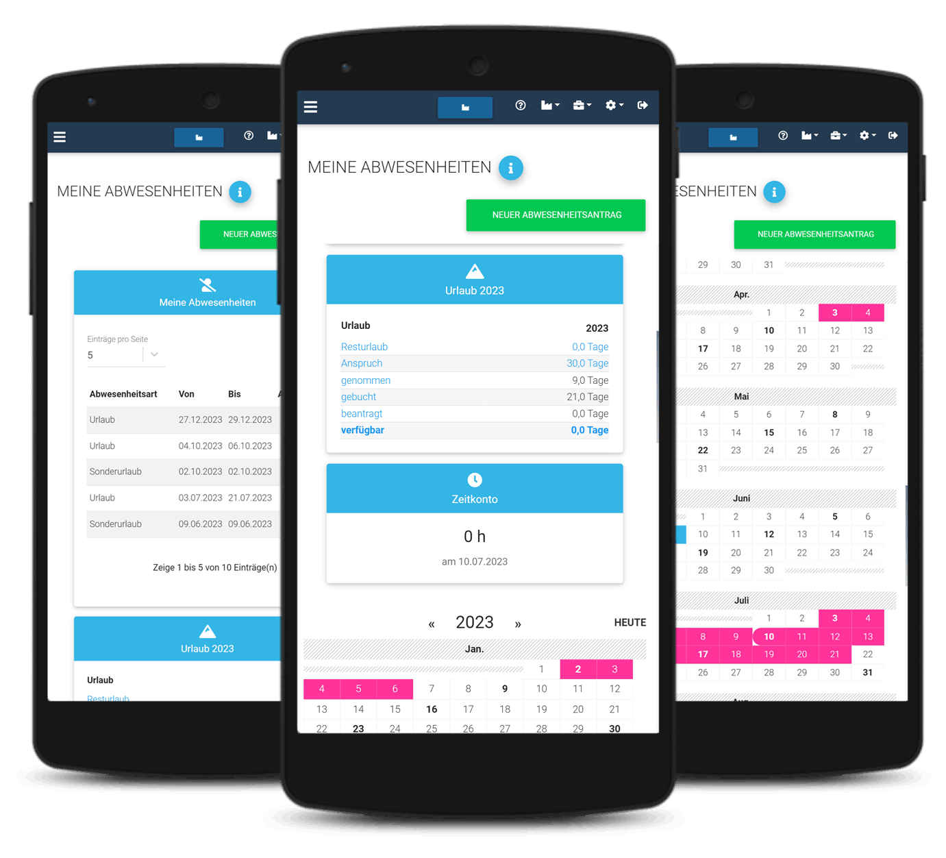 Nutzen Sie die Urlaubsverwaltungsfunktion, welche eine selbsterklärende und mühelose Urlaubsplanung ermöglicht.